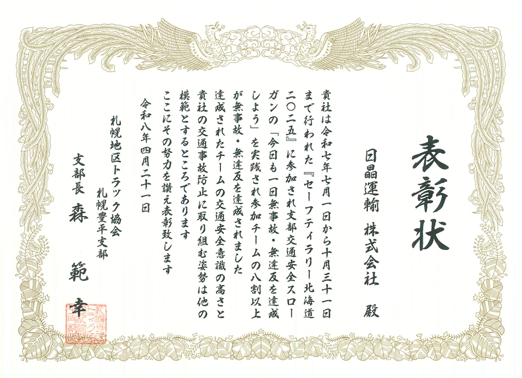 日晶運輸㈱のホームページをご覧いただきまして誠にありがとうございます。